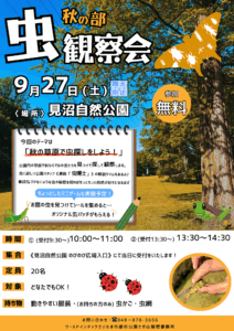 2025.09.16 イベント【見沼自然公園】『虫観察会-秋の部-』開催のご案内見沼自然公園にて9月27日(土)に自然観察イベント 《虫観察会-秋の部-》を開催致します!! イベント名:【昆虫観察に出かけよう!】 場 所 :見沼自然公園 日 時 :令和7年9月27日(土) ※雨天中止 […]