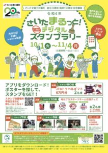 2024.09.27 おおさき公園からのお知らせさいたまるっとデジタルスタンプラリー開催のお知らせ 大崎公園・見沼自然公園10月1日より、『さいたまるっとデジタルスタンプラリー』が開催されます。 スタンプラリー専用アプリをダウンロードし、さいたま市内の各所に設置されているデジタルスタンプを貯めていくと、各賞品への応募が可能となります。 大崎 […]