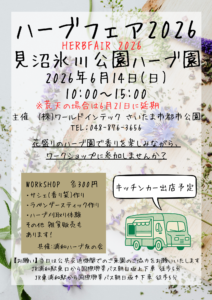 ハーブフェア2024 【開催日時】2024年6月9日(日) 【時間】10時から15時 【場所】見沼氷川公園ハーブ園 主催浦和ハーブ友の会様 共催ワールドインテックさいたま市都市公園 【内容】モノづくり体験     ・ラベ […]