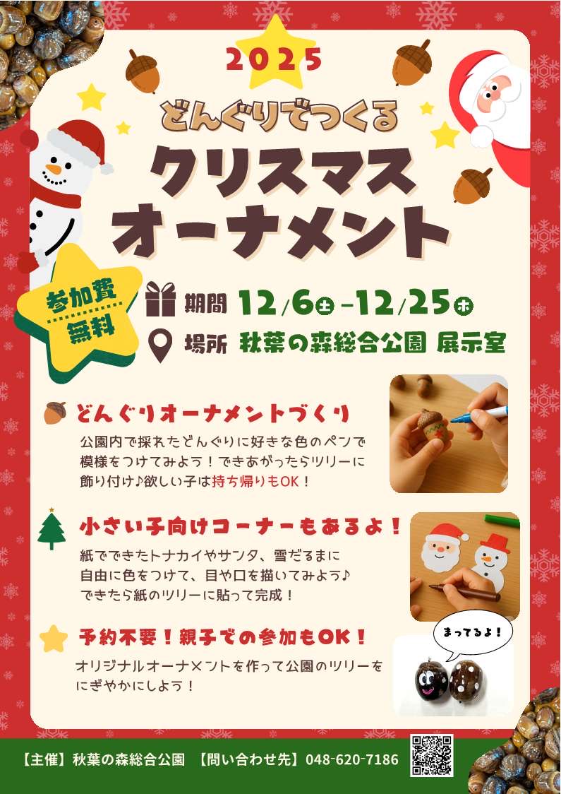【12月イベントのお知らせ】どんぐりでつくるクリスマスオーナメント