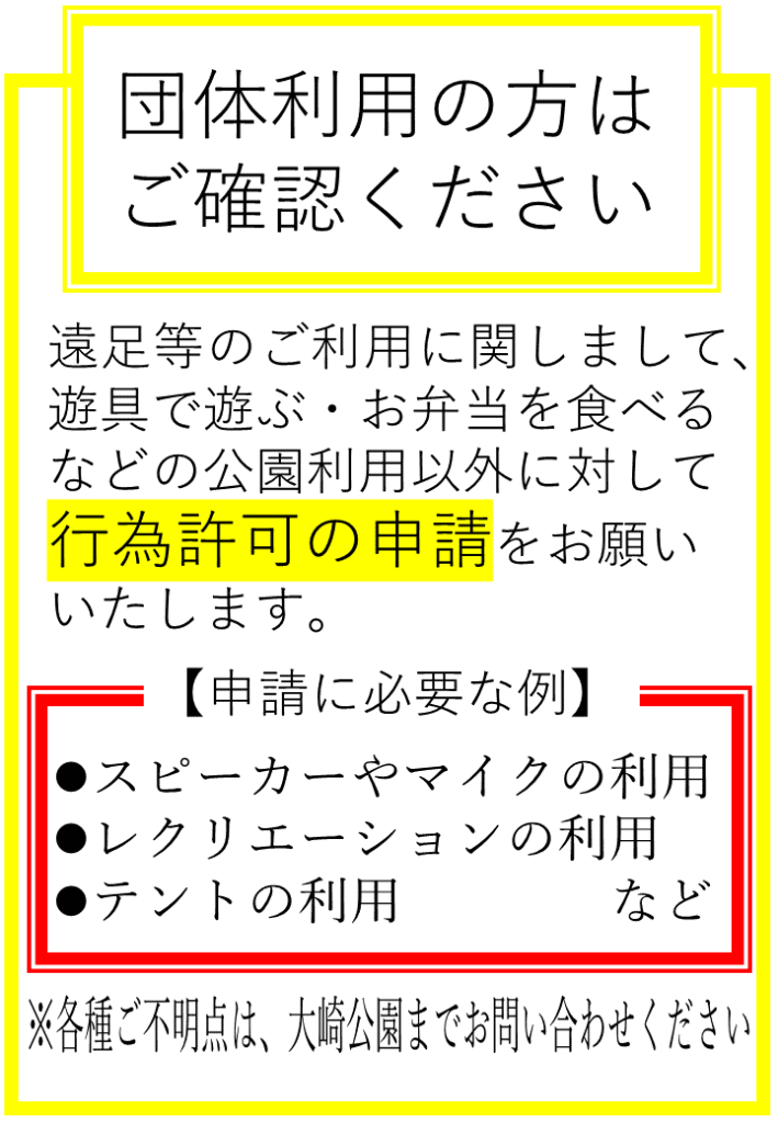 なお、通常のご利用(遠足、遊具で遊ぶ、お弁当を食べるなど)については、申請手続きは不要です。