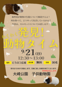 2025.09.21 おおさき公園からのお知らせ【こども動物園】わくわく動物タイム〜モルモット〜