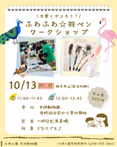 2025.10.13 おおさき公園からのお知らせ【こども動物園】ふわふわ羽ペンワークショップ