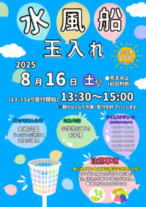 2025.08.08 おおさき公園からのお知らせ【大崎公園】8月16日(土) 《水風船玉入れ》イベント開催のご案内【大崎公園】〈水風船玉入れ〉イベントのご案内 大崎公園内じゃぶじゃぶ池芝生広場にて、8月16日(土)に小学生以下のお子様を対象とした 〈水風船玉入れ〉イベントを開催します! 水風船をかごに入れて遊ぶ真夏の水遊びイベントで […]