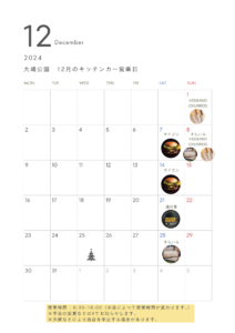 2024.12.10 おおさき公園からのお知らせ【令和6年12月】 *キッチンカー出店予定日のご案内*大崎公園にて12月出店予定のキッチンカーをお知らせいたします♪ 令和6年 12月1日(日) HOSHINO CHURROS 12月7日(土) サイゴン 12月8日(日)&nb […]