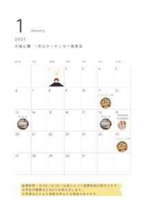 2025.01.04 おおさき公園からのお知らせ【令和7年1月】 *キッチンカー出店予定日のご案内*大崎公園内にて、1月出店予定のキッチンカーをご案内いたします♪ 1月11日(土) ファミリーピザ 1月13日(月祝) そらいふ 1月18日(土) そらいふ […]