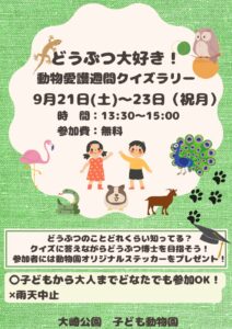 2024.09.23 おおさき公園からのお知らせ【こども動物園】どうぶつ大好き!動物愛護週間クイズラリー