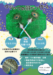 2024.10.12 おおさき公園からのお知らせ【こども動物園】クジャクの羽ペン作り