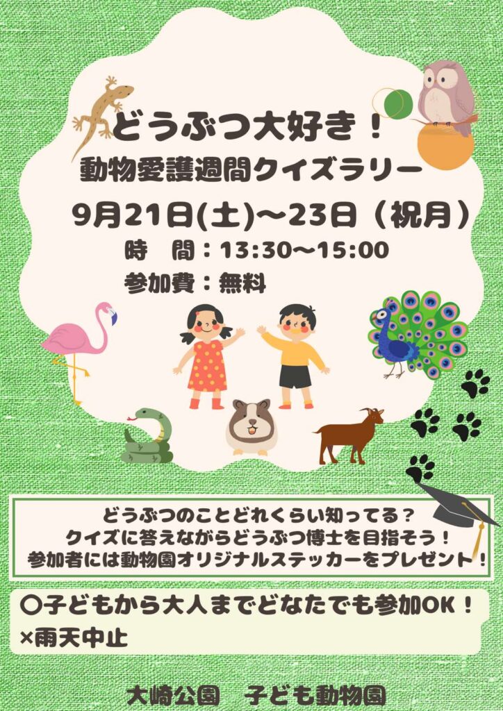 【こども動物園】どうぶつ大好き!動物愛護週間クイズラリー