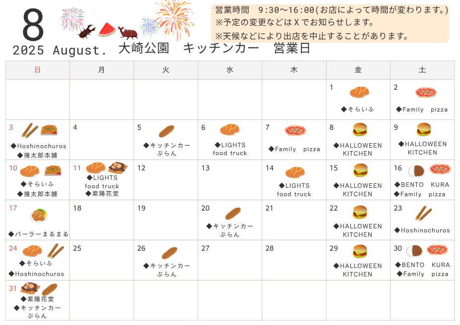 *令和7年8月*キッチンカー出店スケジュールのご案内